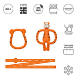 Baby can then move on to the Tiger Teether. This award-winning bestseller is fun, flexible and has textured bumps get to the source of pain quickly.
