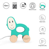 The Matchstick Monkey Pull Along Animal Toy is the perfect way to encourage imaginative and creative play. Made from Beechwood with a cotton string, this wooden pull along is easy to grip and hold with the cut out middle design. A great gift for a child's first birthday, as they have endless fun racing or pushing it around the floor. Suitable for 12 months plus.