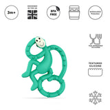 A fun and flexible textured teether that's perfect for very young babies. The BioCote® Antimicrobial Protection helps keep germs at bay, whilst the textured bumps gently massage your baby's gums to relieve pain. Cute and compact, Mini Monkey is perfect for keeping in your baby bag when you're on the go.