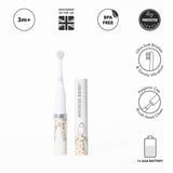 • Battery-powered electric sonic toothbrush for babies and toddlers