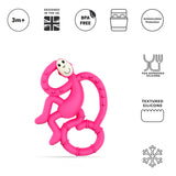 A fun and flexible textured teether that's perfect for very young babies. The BioCote® Antimicrobial Protection helps keep germs at bay, whilst the textured bumps gently massage your baby's gums to relieve pain. Cute and compact, Mini Monkey is perfect for keeping in your baby bag when you're on the go.