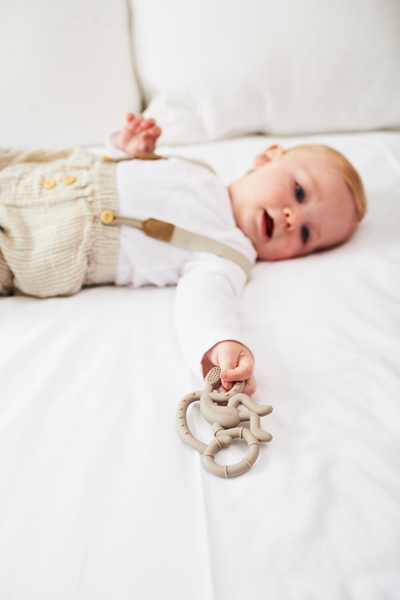 Flexible and lightweight, your baby can hold Mini Monkey on their own, bringing it to their mouth when they feel the urge to chew.