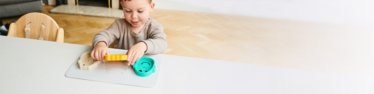 Our Animal Snack Mat is the perfect weaning plate mat. The creative design allows little ones to develop their fine motor-skills by matching the animal faces with the puzzle-like compartments on the mat