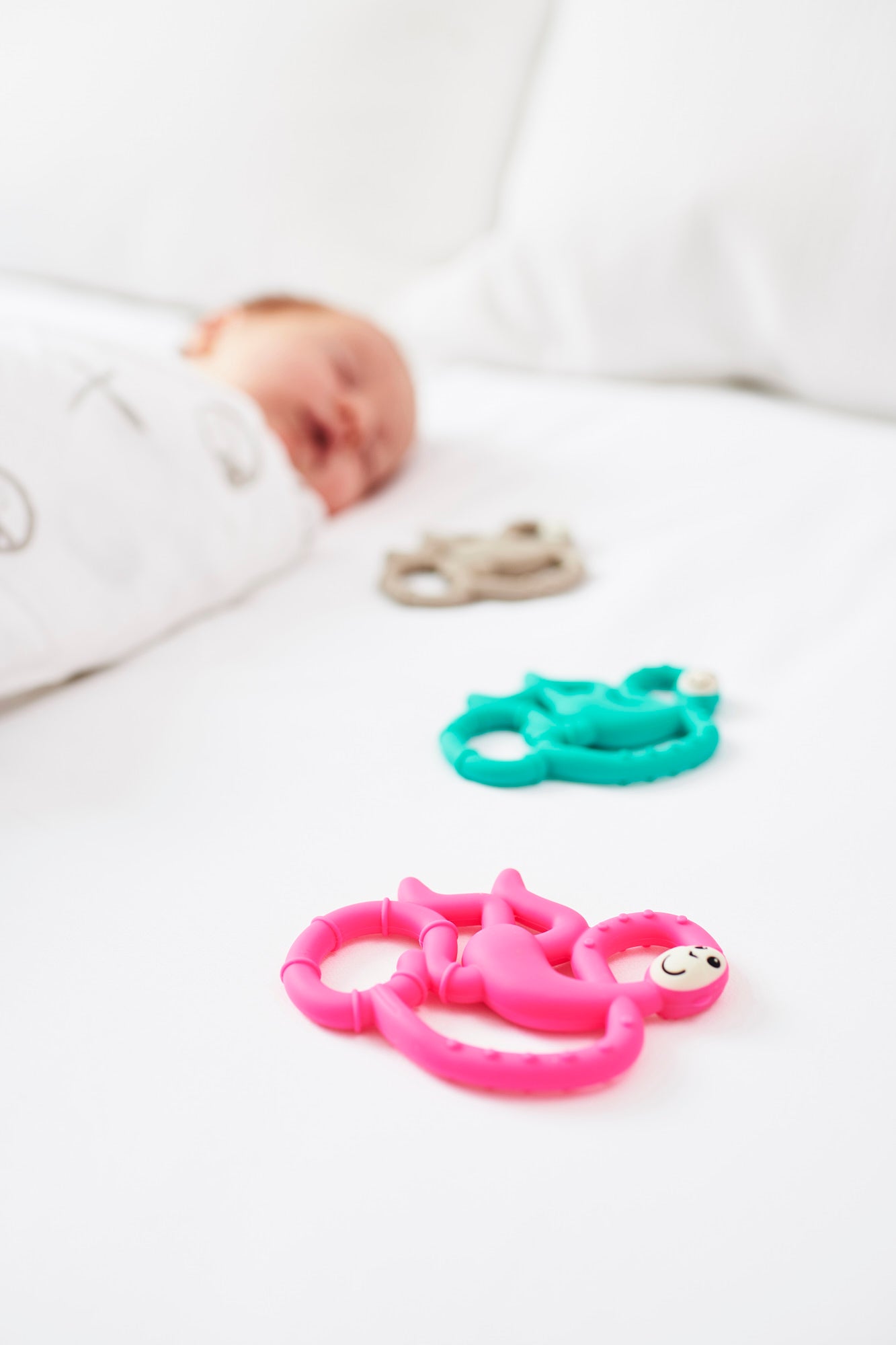 A fun and flexible textured teether that's perfect for very young babies. The BioCote® Antimicrobial Protection helps keep germs at bay, whilst the textured bumps gently massage your baby's gums to relieve pain. Cute and compact, Mini Monkey is perfect for keeping in your baby bag when you're on the go.