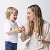 • Battery-powered electric sonic toothbrush for babies and toddlers
