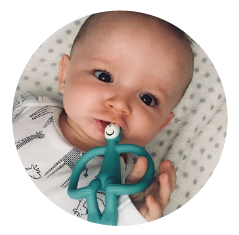 It’s the perfect size and shape for him to easily hold onto and it obviously helps him with his teething too! He loves the little thing 😍 You can also use it to apply teething gels to sore gums and has a bristled texture on the back of its head to do so. Perfect for chewing!